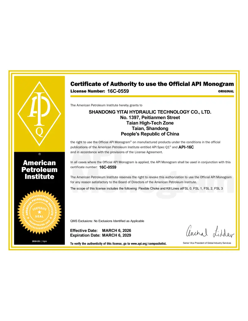 API SPEC 16C-certifiering